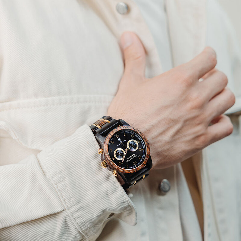 Our most popular wooden watches for men. Different diameters and materials suitable for all men.