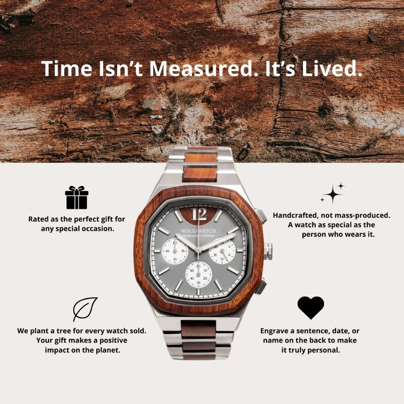 For twelve years, WoodWatch has stood by one belief: time is not measured in hours, but in the moments that truly matter. The Eternity XII Collection captures this philosophy through four exclusive designs, each crafted as a tribute to meaningful connections and timeless journeys.
