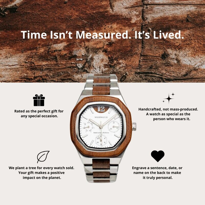 For twelve years, WoodWatch has stood by one belief: time is not measured in hours, but in the moments that truly matter. The Eternity XII Collection captures this philosophy through four exclusive designs, each crafted as a tribute to meaningful connections and timeless journeys.
